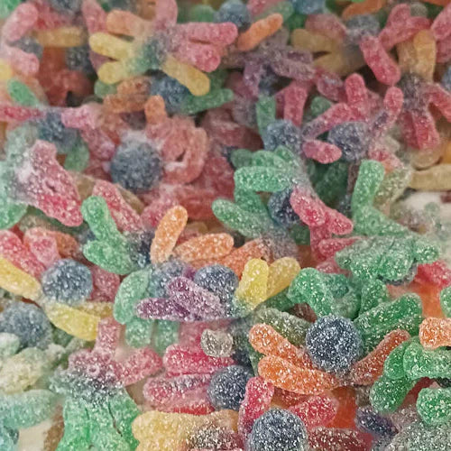 Cada una de estas Chucherías Arañitas es una explosión de sabor. Disfruta de la refrescante acidez del limón, el clásico gusto de la cola, la dulzura de la fresa y el toque cítrico de la naranja. Su textura dulce y ligeramente crujiente, gracias a la cobertura de azúcar, las hace perfectas para picotear en cualquier momento y convertir cada bocado en una pequeña fiesta.
