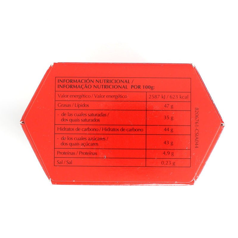 {"type":"root","children":[{"type":"paragraph","children":[{"type":"text","value":"Azúcar, grasa vegetal (coco, palmiste), manteca de cacao, pasta de cacao,"},{"type":"text","value":"leche ","bold":true},{"type":"text","value":"en polvo,"},{"type":"text","value":"leche ","bold":true},{"type":"text","value":"desnatada en polvo, lactosa, grasa láctea anhidra, emulgente (lecitina de soja),extracto de malta de cebada, aromas. Puede contener avellanas y otros frutos de cáscara."}]}]}