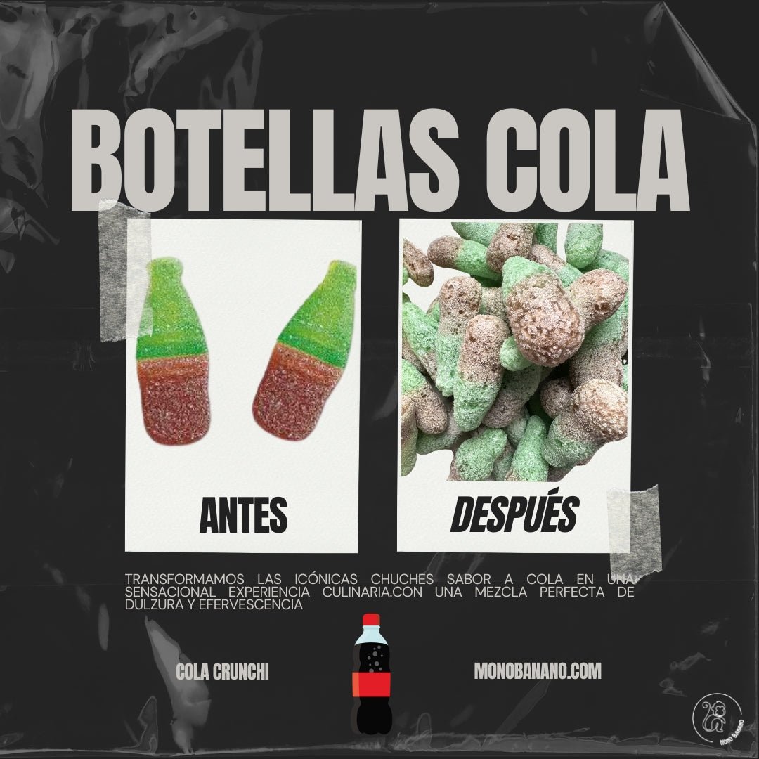 Descubre las chuches liofilizadas de Coca Cola, una explosión de sabor que revoluciona los sentidos. Cada pieza, transformada por la liofilización, revela 3 texturas distintas que enriquecen la experiencia de degustación. Estas cocacolas son hasta 2 veces más grandes que sus homólogas originales, ofreciendo una satisfacción sin igual para los aficionados de estos clásicos sabores. El intenso y refrescante gusto de la cola queda grabado en la memoria para siempre.