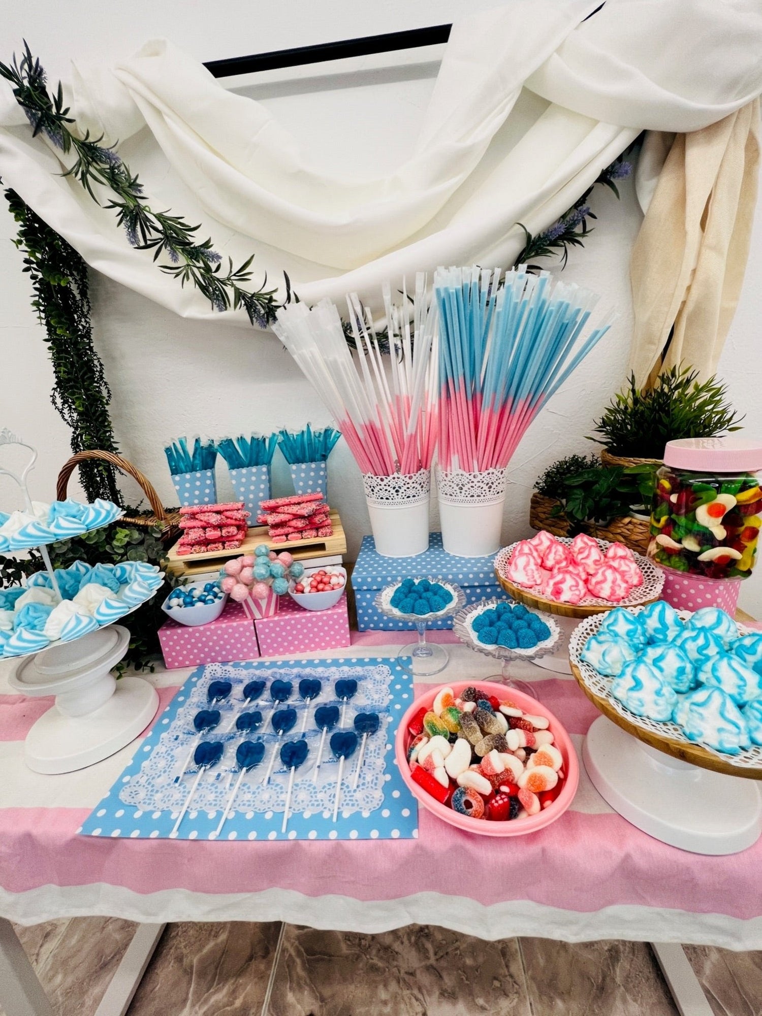 Añade un toque dulce y encantador a tu Baby Shower con nuestra Mesa Dulce. Contáctanos hoy mismo para realizar tu reserva y hacer que tu celebración sea aún más dulce y memorable.