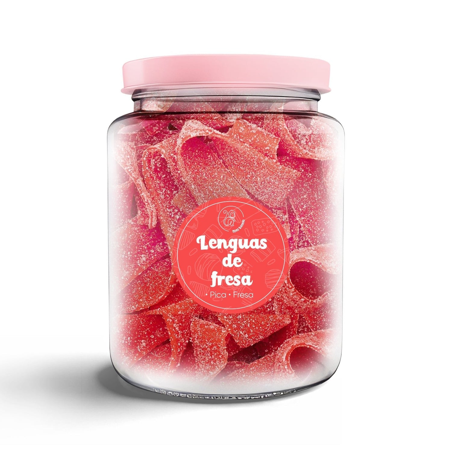 Nuestro frasco de 1000ml repleto de lenguas de fresa de chuche es la solución perfecta. Ideal para tu pareja, esa persona que hace tus días más dulces; tus amigos, aquellos con quienes compartes tus momentos de alegría; tus padres, los primeros en enseñarte sobre el amor; o tu familia, el núcleo de tu existencia, este frasco representa el cariño profundo que sientes por ellos.