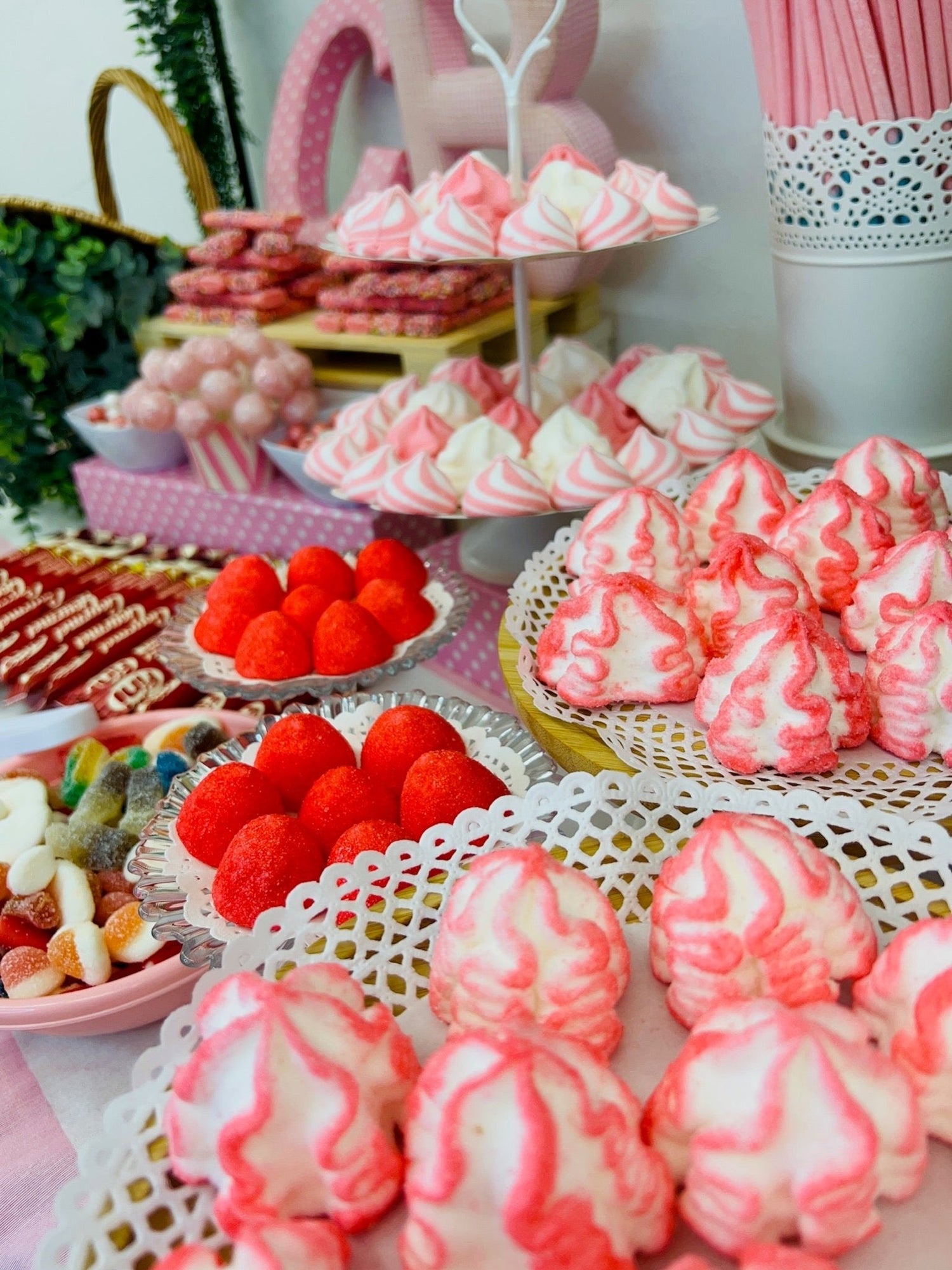 El color rosa es símbolo de delicadeza y elegancia, y nuestra Mesa Dulce Rosa refleja esta temática de manera excepcional. Cada detalle, desde la decoración hasta la selección de chuches y dulces, está cuidadosamente elegido para encajar en la paleta de colores rosa.