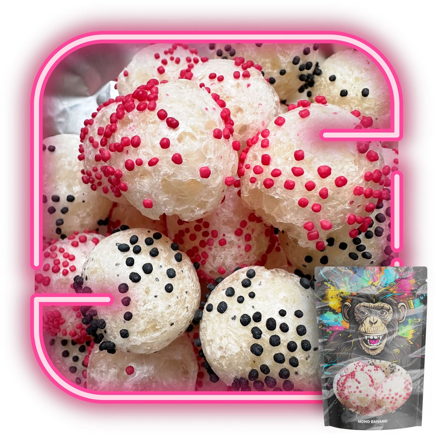 Sumérgete en la dulzura única de nuestras Moras de Chuche liofilizadas. Estas golosinas ofrecen una experiencia inigualable con múltiples texturas en su interior, con 3 variaciones distintas dependiendo del color de cada zona. Su sabor es extraordinario, garantizando un placer excepcional en cada bocado. En comparación con las chuches convencionales, ¡nuestras Moras de Chuche son hasta 5 veces más grandes!