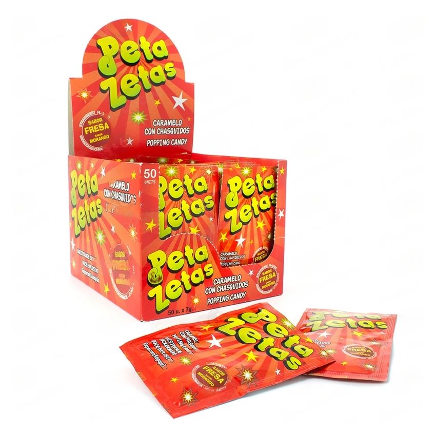 Experimenta la sensación única y divertida de Peta Zetas, el caramelo que estalla en tu boca y ofrece una explosión de sabor. Con burbujas de CO2 encerradas en cada pieza de caramelo, Peta Zetas ofrece una experiencia emocionante e innovadora en cada bocado.