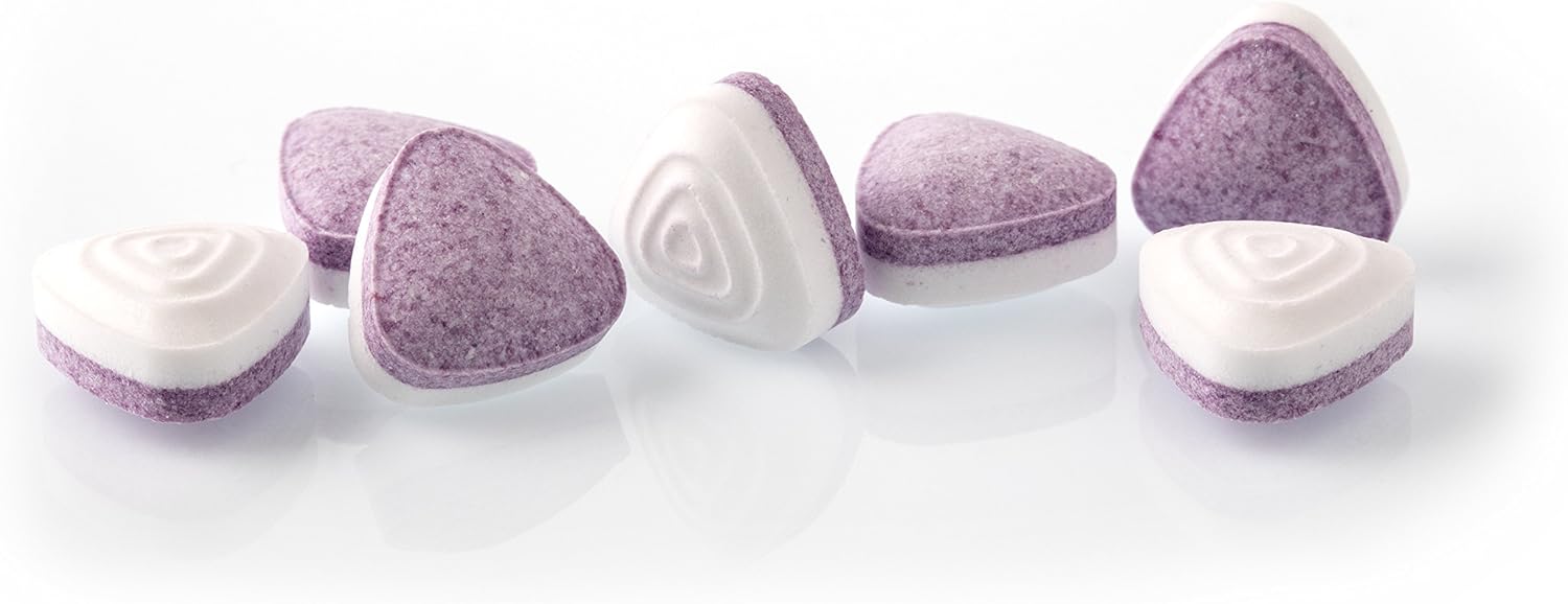 Edulcorantes (sorbitol, sucralosa, acesulfamo K), acidulantes (ácido málico, ácido cítrico, ácido tartárico), aroma, antiaglomerante (sales magnésicas de ácidos grasos), aceite totalmente hidrogenado de girasol, vitamina C, colorantes (carmines, azul brillante FCF).